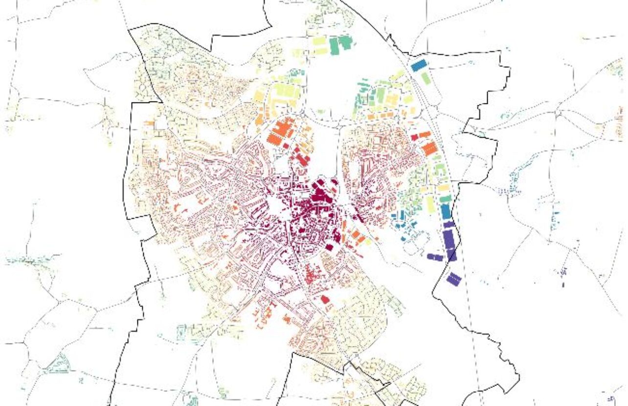 Another objective was to plan the development around a string of local centres ensuring that all residents would be within a five minute walk of local services, and a 15-minute walk of the proposed high street.