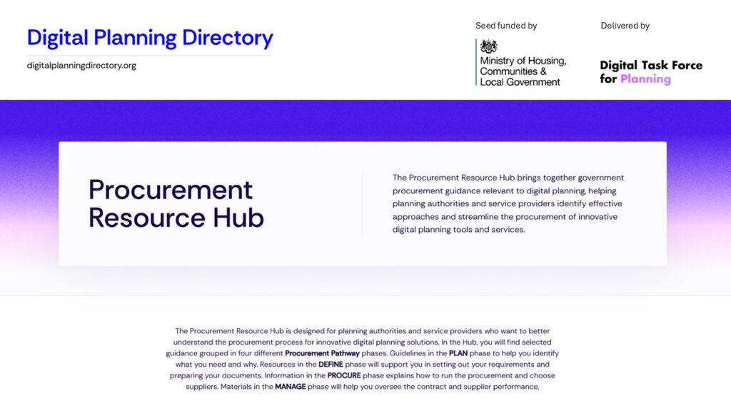 Designed to support both local planning authorities and digital service providers, the new Hub has been developed in collaboration with PUBLIC. It brings together key government guidance on procurement relevant to digital planning, providing a single, practical resource to help organisations identify effective approaches, streamline processes, and procure innovative planning tools and services with confidence.
